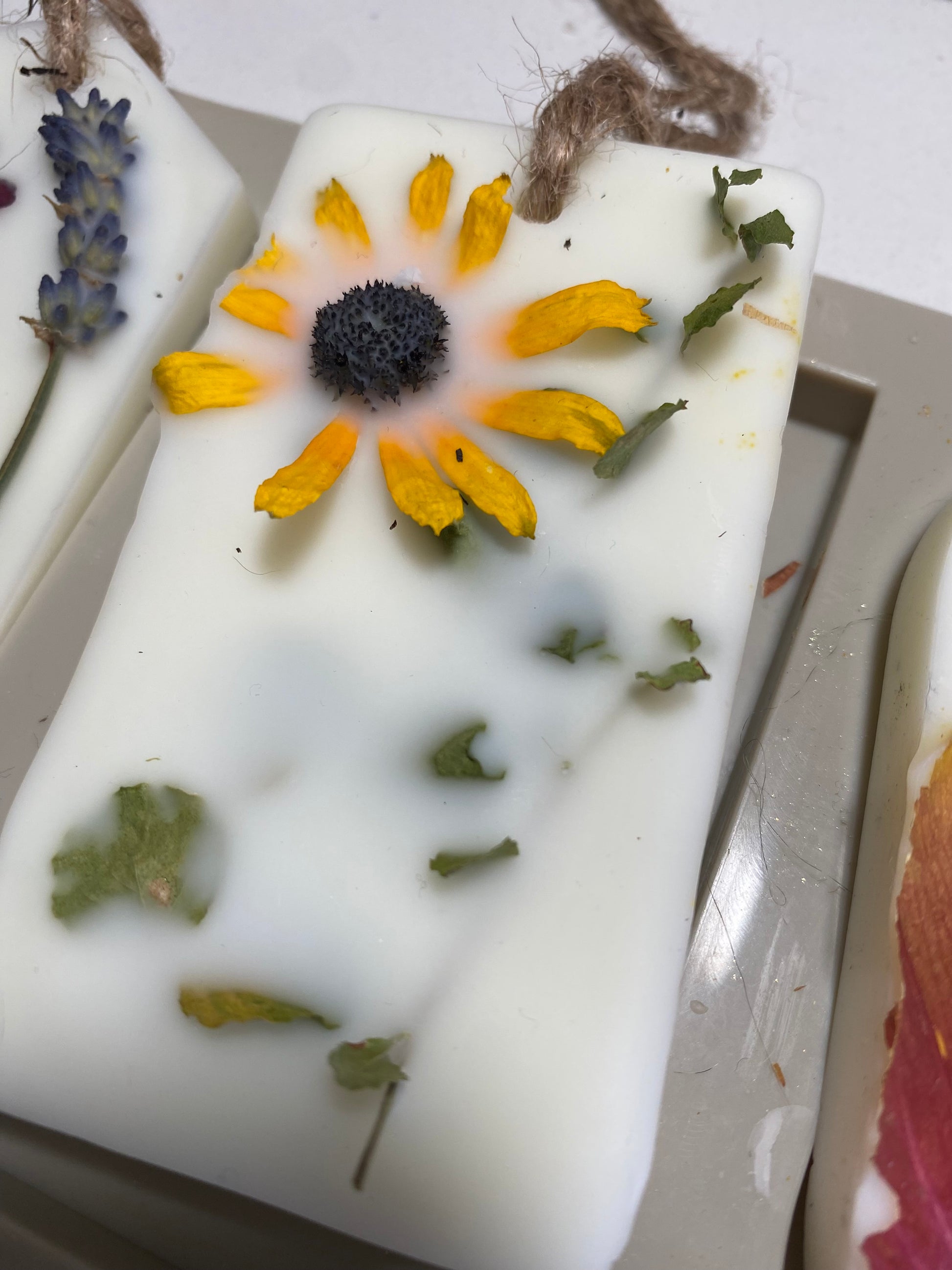 Crafted with care, my wax sachets are handmade using a unique blend of natural coconut and soy wax. Each sachet is adorned with dried floral embellishments grown in my own garden and dried by me, before being thoughtfully arranged to be juuuuust right. Bring a touch of nature to your closets, drawers, foyer, bathroom or any other small area with the benefits of a no-flame, long-lasting fragrance. Available in all current candle scents, just select your preferred shape, scent and embellishments!